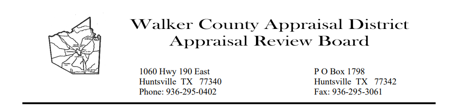 Your interest in this important civic duty is appreciated. If we can provide you with additional information, please call Walker CAD @ 936-295-0402 to speak with Jamie Innerarity, Walker CAD’s support staff for the ARB. You may also email your application to info@walkercad.org